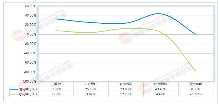 图表:2025年前三季度5家中国涂料行业头部企业毛、净利率对比