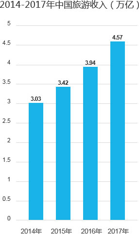 国家旅游局的数据显示:2017年我国国内游人次达到50亿,同比增长13.64%;国内居民出境游人次创新高达到1.43亿,同比增长5.62%;国内旅游收入4.57万亿,同比增长15.92%;城镇居民旅游支出保持平稳但偏低水平。