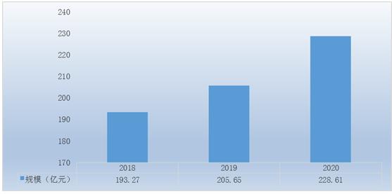 2020年,我国水泥设备市场规模达到228.61亿元,同比增长10 %,行业近三年增速较快。