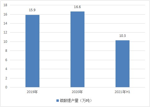图表:2019-2021年H1碳酸锂产量(万吨)