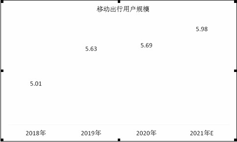 图表:2018-2021年中国移动出行用户规模情况(亿人)