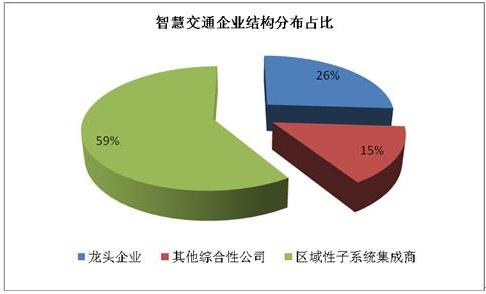 数据显示,智慧交通企业占比最多的是区域性子系统集成商,占比59%,其次是龙头企业占比26%。