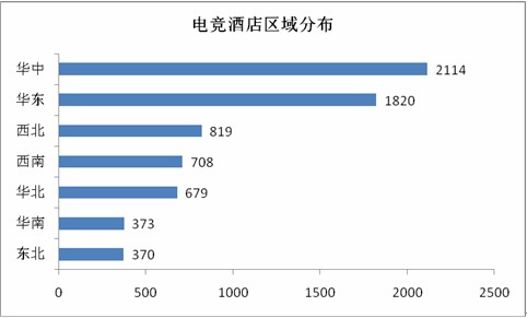 2021年7月份数据显示,国内专业电竞酒店数量为8009家,相比2020年底的6863家净增加1146家,其中华中与华东地区的酒店数量分列第一第二位。