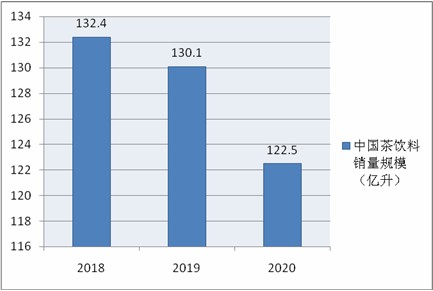 图表:2018-2020年我国茶饮料销量规模分析(单位:亿升)