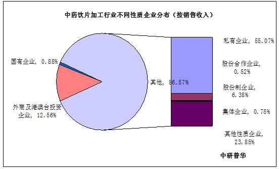 图表:中药饮片加工行业不同性质企业分布(按销售收入)