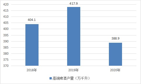 图表:2018-2020年中国高端啤酒产量(万千升)