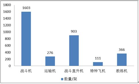 我国军机总量与美国存在较大差距,对标世界一流军队,军机增补空间很大。截至2019年底,美国拥有军用飞机13266架,占比25%,数量居全球第一;其次是俄罗,数量达4163架,占比8%;我国拥有军机数量为3210架,占比约为6%,其中战斗机1603架、直升机903架、运输机276架、教练机366架、特种飞机111架,同美国存在较大差距。建设一流军队已成为国家发展战略,对标美国,我国军机尤其是先进战机在数量上存在很大增补空间,以“20系列”为代表的国产先进战机进入批产列装阶段,订单有望加速释放,带动我国航空产业景气度进一步提升。从战斗机的代际结构上看,中国战斗机中大量存在着歼-7、歼-8等老旧二代机型,三代机、四代机数量占比远低于美国、俄罗斯两个世界强国。J-7、J-8等二代机均为上世纪90年代以前的主流机型,服役时间较长,未来将逐步升级为J-10、J-16、J-20等三代半或四代新机型。此外随着国内新型直升机、教练机、运输机的成熟,相关飞机也面临着大量的列装、换装需求。