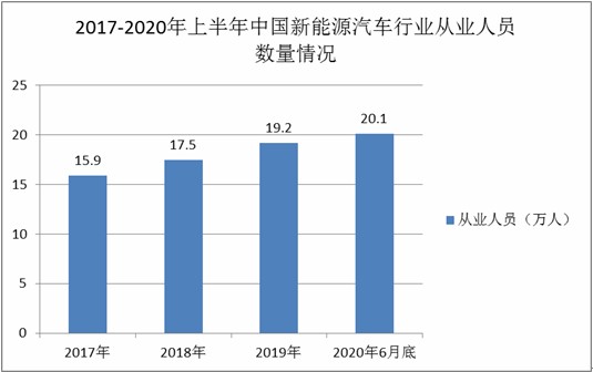 图表:2017-2020年上半年中国新能源汽车行业从业人员数量情况