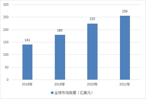 图表:2018-2021年全球无人机行业市场规模(亿美元)