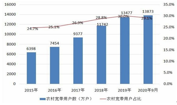 图表:2015-2020年农村网络用户情况