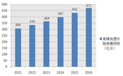 图表:2021-2026年我国高精度地图行业市场规模预测(单位:亿元)
