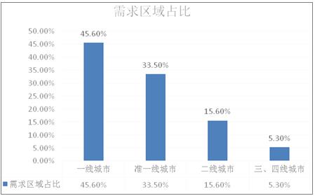图表:2021年我国不同线级城市市场份额占比情况