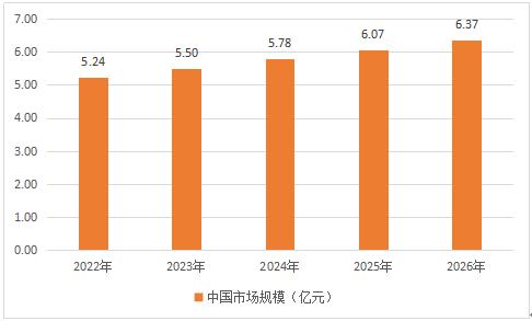预测2022年中国花青素行业市场规模达到5.24亿元,至2026年市场规模达到6.37亿元,年复合增长率为5%。
