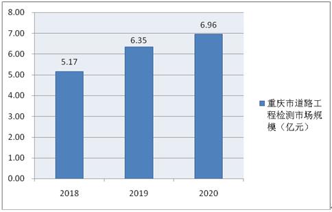 图表:2018-2020年重庆市道路检验检测市场规模(单位:亿元)