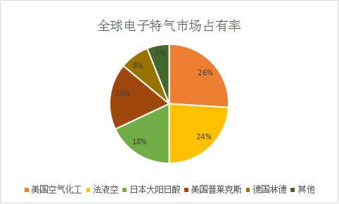 图表:全球电子特气市场占有率