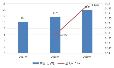 由于聚乳酸作为生物新材料应用前景的日益看好,近年国内一些玉米深加工企业和生物化工企业开始投资进入聚乳酸行业,2018年末,浙江海正生物材料股份有限公司及中粮生化能源(榆树)有限公司等PLA生产线的建设,2018年国内PLA年设计生产能力近13万吨。2019年产能大约在14.9万吨左右,产量在13.9万吨左右,但受制于技术因素,目前国内企业用于生产聚乳酸的原材料——丙交酯仍主要从国外进口,生产成本较高,已成为制约国内聚乳酸产业发展的瓶颈。