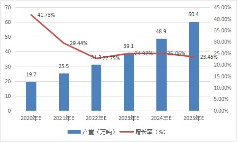 随着聚乳酸作为生物新材料应用前景的日益看好,近年国内一些玉米深加工企业和生物化工企业开始投资进入聚乳酸行业,预计到2025年我国聚乳酸产量将超过60万吨。