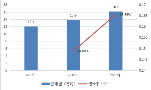 2019年我国聚乳酸市场需求量约为16-18万吨,预计未来将以15%-25%的速度增长,目前,PLA的主要消费领域是包装材料,占总消费量的65%左右;其次为生物医学领域,约占总消费量的26%。我国是聚乳酸需求量增长最快的市场之一。随着市场的发展,我国对PLA的需求还会持续增长。