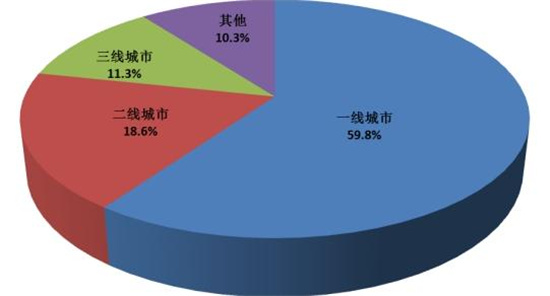 滑雪人群的城市等级呈现阶梯式分布,近四成聚集于一线城市,这部分人最快接触前沿消费潮流、对新事物最具探索欲。