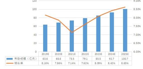 图表:2022-2025电钢琴行业市场规模及增长率预测