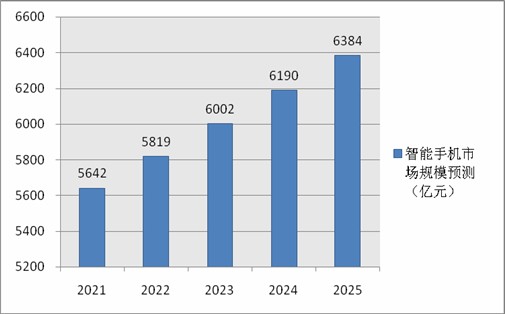图表:2022-2025年我国智能手机行业市场规模预测(单位:亿元)