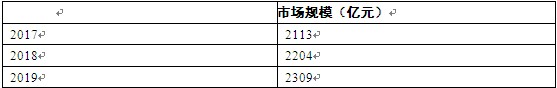 2019年,中国家纺行业市场规模约为2309亿元,较2018年上涨了4.76%,行业发展较稳定。
