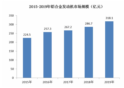 图表:2015-2019年铝合金发动机市场规模情况