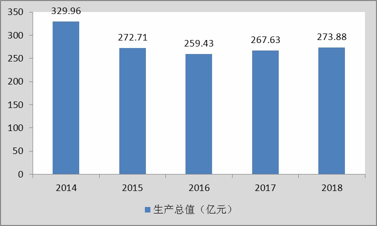 图表:2014-2018年中国民爆行业生产总值