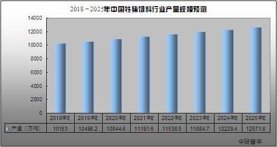 图表:2018-2025年中国猪饲料行业产量规模预测