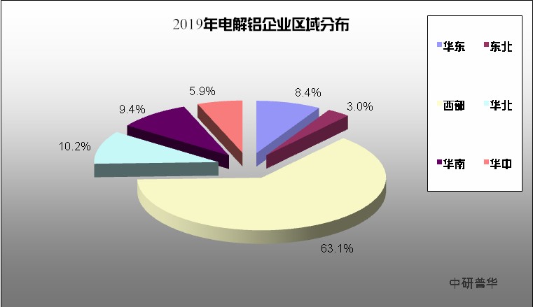 由于电解铝行业受成本和资源等因素的影响,电解铝行业主要分布在如西部资源较为丰富的地区,其占比达63.1%,其余地区分布比较少,均匀在10%及其以下。