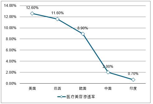图表:全球主要国家医疗美容渗透率对比