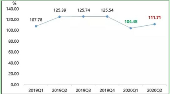 2020年一季度由于受疫情影响,智能锁企业停工停产,智能锁行业企业生产经营受到较大冲击,导致智能锁产业发展指数大幅下滑,产业发展指数一季度收报历史最低104.48点,环比下跌16.77%。由于智能锁产业供应链较长,各环节受疫情的影响有不同的滞后期,因此上半年产业发展状况均不如2019年同期,截至2020年二季度,产业发展指数同比下跌10.91%。