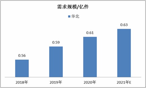 图表:2018-2021年华北地区卫浴陶瓷市场需求规模情况
