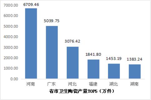 图表:2019年省市卫生陶瓷产量TOP5