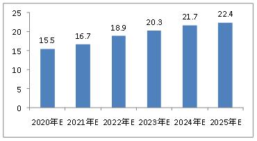 图表:2022-2025年中国电子信息制造行业市场规模预测(万亿元)