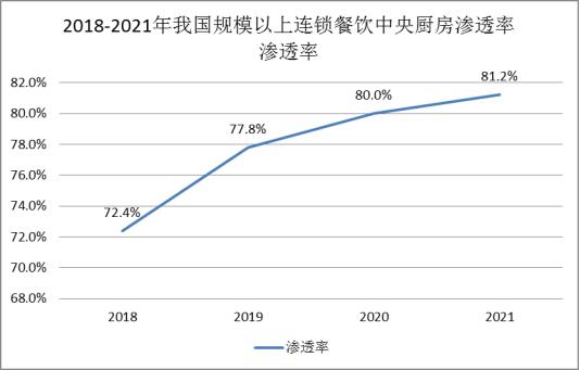 图表:2018-2021年我国规模以上连锁餐饮中央厨房渗透率渗透率