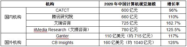 图表:各机构2020年中国计算机视觉规模预测
