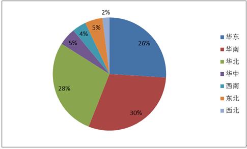 从中国船用惯性导航系统区域结构来看,目前国内船用惯导系统主要集中在华南、华北、华东这些沿海地区,主要受军事舰船产业的布局影响。传感器、智能装备、惯性导航系统测试设备市场规模占比最大,达30%;华北地区其次,占比28%。