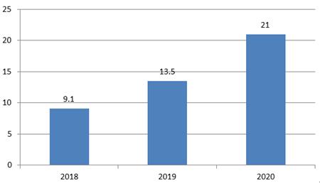 图表:2018-2020年车联网检测行业市场规模(单位:亿元)