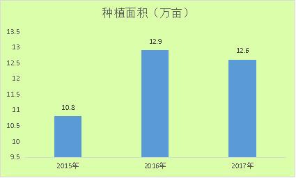 铁皮石斛经过几年的迅猛发展,终于停下了步伐,进入调整期,行业的种植面积也有所下降,但是由于铁皮石斛的种植周期在3-5年之间,因此整个行业的种植面积依旧超过12万亩,截止2017年年底,行业的种植面积约为12.6万亩。
