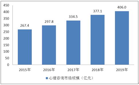 图表:2015-2019年心理咨询行业市场规模(单位:亿元)