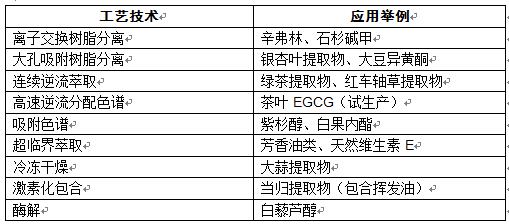 图表:先进技术在植物提取物生产中的应用举例
