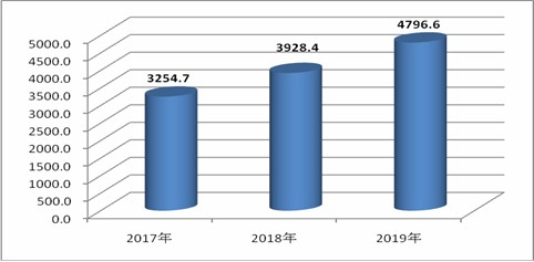 图表:2017-2019年中国智能家居行业市场规模(亿元)