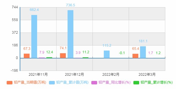 图表:2021年11月-2022年3月中国铅产量