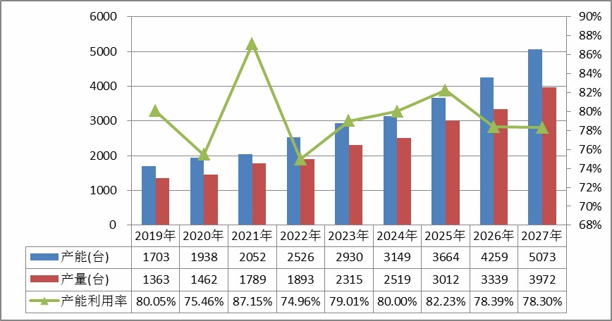一、中国空气消毒机器人产能、产量、产能利用率及发展趋势(2019-2027)