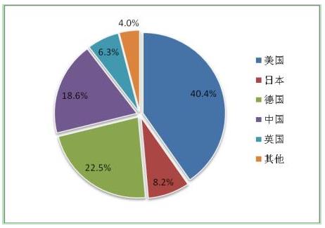 图表:全球3D打印产业区域分布情况(单位:%)