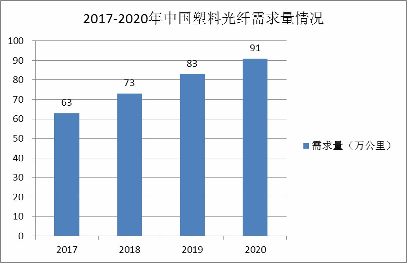 图表:2017-2020年中国塑料光纤需求量情况