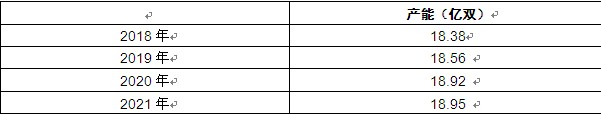 图表:2018-2021年拖鞋行业产能