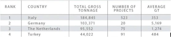 排名第一的全球超级游艇建造国/地区毫无悬念,榜首依旧是意大利,其次是荷兰和土耳其。主要生产半定制项目的建造国/地区,其订单量取得了重大进展,同比增长20%甚至更多,例如意大利(同比增长28%)、英国(同比增长31%)和中国(同比增长19%)。以全定制项目建造著称的建造国/地区,其订单量增长有限,如荷兰(同比增长4.3%)和德国(同比增长5.2%)。与此同时,以半定制和全定制项目建造闻名的土耳其,以同比15%的增长率位列中间。