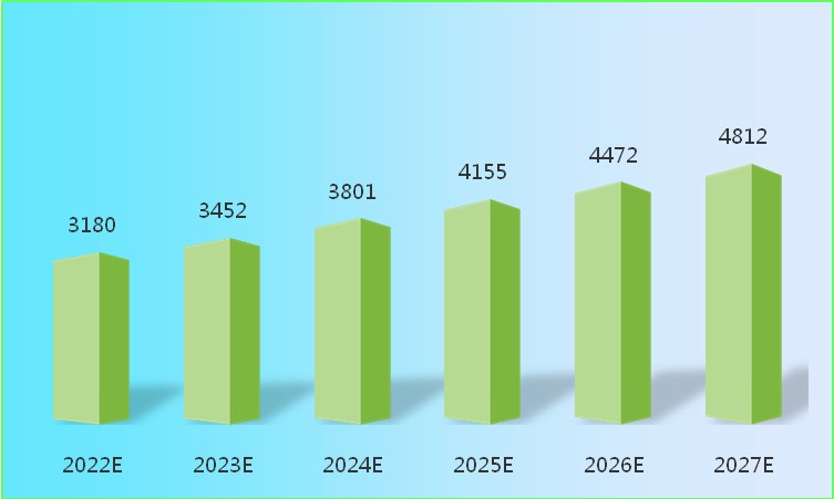 图表:2022-2027年我国工程造价咨询行业市场规模预测(亿元)
